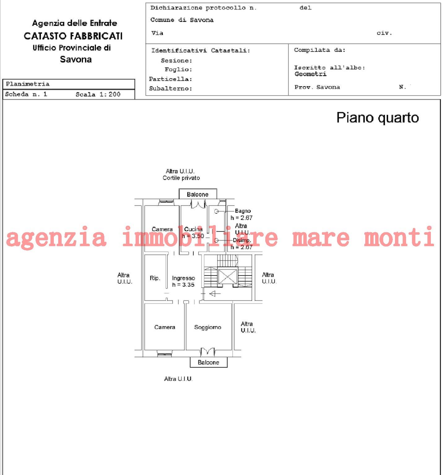 Rif 4045 ag. imm. mare monti propone in Vendita a Savona centro in zona P.zza Saffi Appartamento in buone condizioni in palazzo signorile degli anni '30 posto al 4° piano con ascensore;